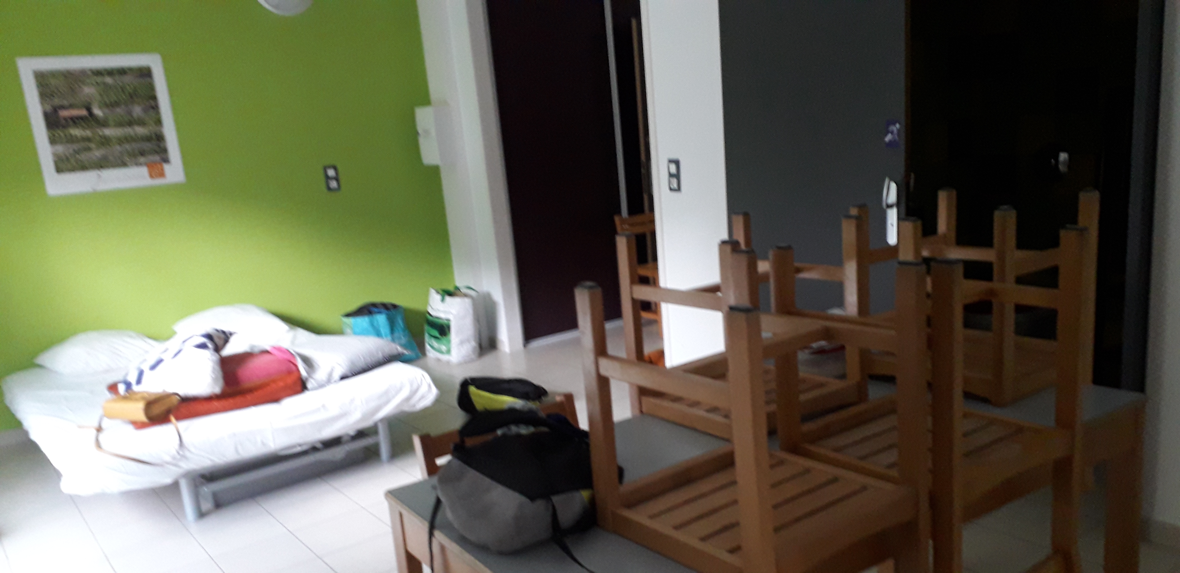 Nous étions à une table de 4 , comme il avait oublié des couverts nous nous sommes mis à 6 sur cette table . Nous avons été servi pour 4 sachant qu’on était 6 ! La douche était extrêmement petite et pas très propre … Nous avons trouvé des paquets de chips ouverts , des vêtements qui n’étaient pas à nous … Bref je ne recommande absolument pas cet hébergement !!!!!!!