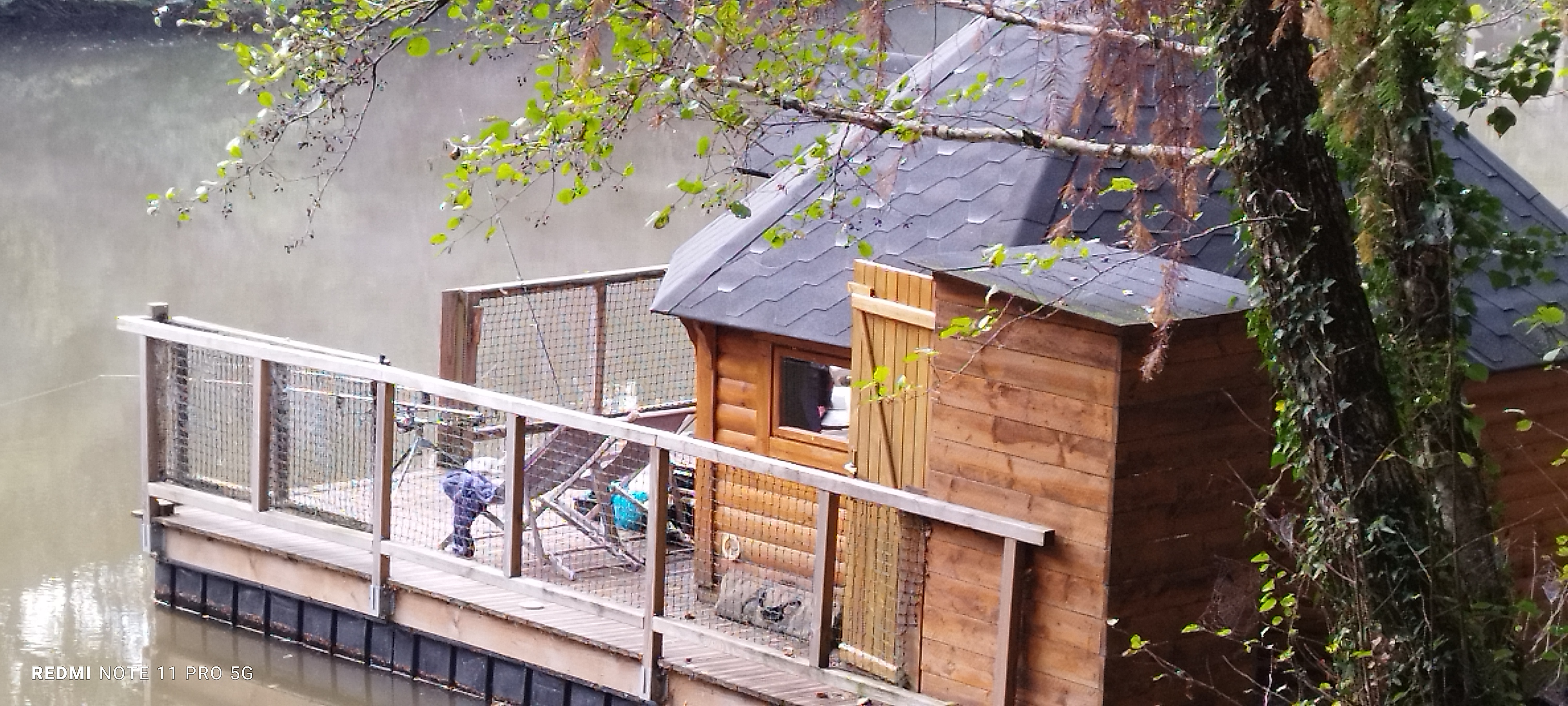 un seul point manquant, les serviettes de toilette. petit déj sur le ponton parfait. en cas de forte chaleur, la cabane est très bien exposée.