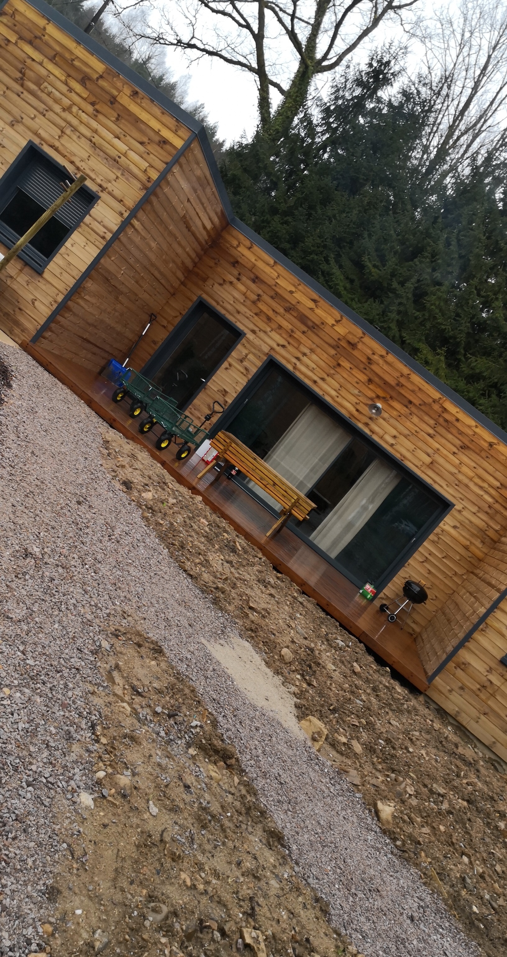 chalets vosgiens récents, cosy et confortables, logé dans un cadre de verdure au calme, au fond d'une petite route. Très reposant, je recommande.