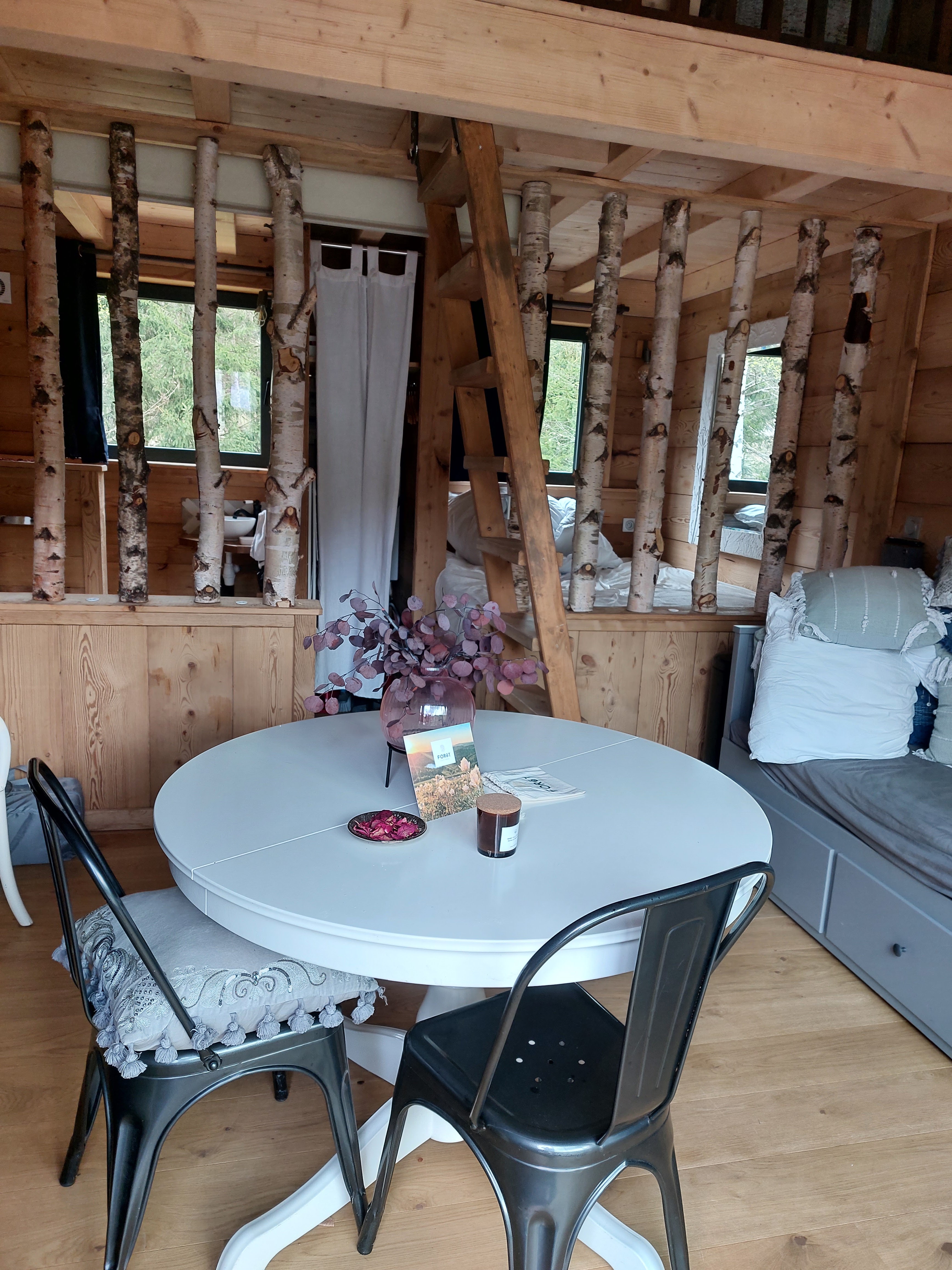 Un super week end en famille pour fêter mon anniversaire. En pleine nature au calme dans un cadre verdoyant on a apprécié la décoration personnalisé pour 9 personnes super endroit très bien équipé. Les propositions d activités en famille nous ont ravi découverte de la forêt avec des jeux ont permis aux petits et grands de découvrir la forêt. Nous avions choisi un repas traiteur et aussi massage... Merci à la propriétaire de nous avoir proposé tôt cela. Merci pour son professionnalisme et sa gentillesse. Nous recommandons vivement ce lieu.