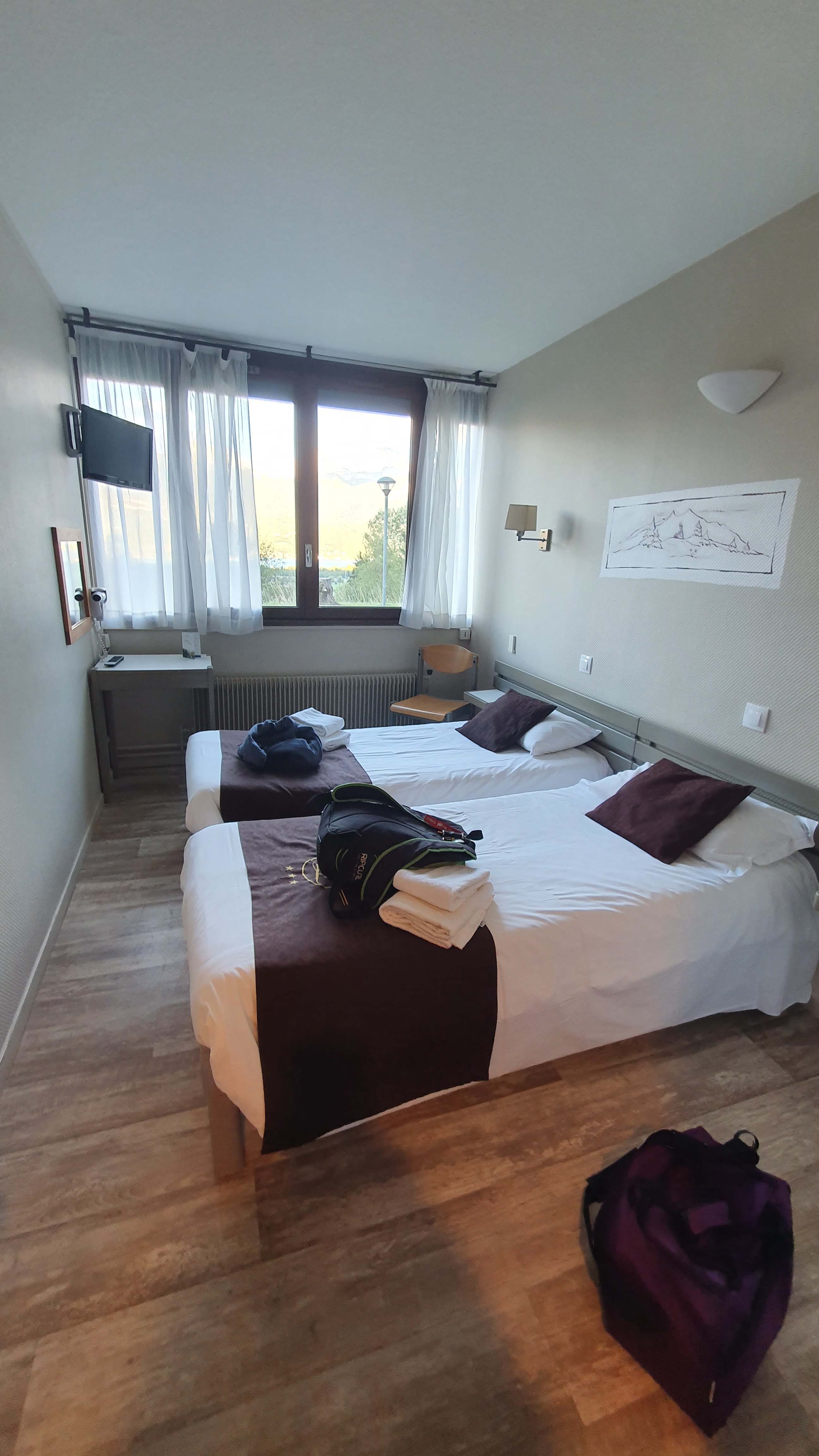 Pour la partie hotel : très déçu par le rapport qualité prix. Le bâtiment fait penser à un ancien hôpital sordide jusqu'à trouver l'ascenseur qui vous fais un tassement de vertebre. Pour la chambre : on allume et on découvre des mouches crevées dans l'abat jour. Le lit grince chaque fois qu'on se tourne. Pour une chambre à 105e la nuit, dormir sur un sommier composé d'une planche d'aglo, c'est honteux. La salle de bain se compose d'une vieille baignoire sabot la poire de la douche fuit et il reste un tas de cheveux ou de poile collé sur le mur de paroie de douche, le rideau s'effiloche et les gobelets en plastique ne sont pas neuf... l'hôtel mérite de recevoir des colos de jeunes de 8 à 15 ans. Ce n'est pas un hôtel avec ces prestations me direz vous, mais le prix lui est à la hauteur... et même bien plus haut. La télé est un timbre poste donc pas du niveau d'un 3 étoiles. Une lampe de chevet qui ne fonctionne pas. Matelas pas efficace et insonorisation inexistante, on dors avec le voisin. Couples et vacanciers de passage allez ailleurs. C'est à éviter au maximum !!!!!!!!!!!