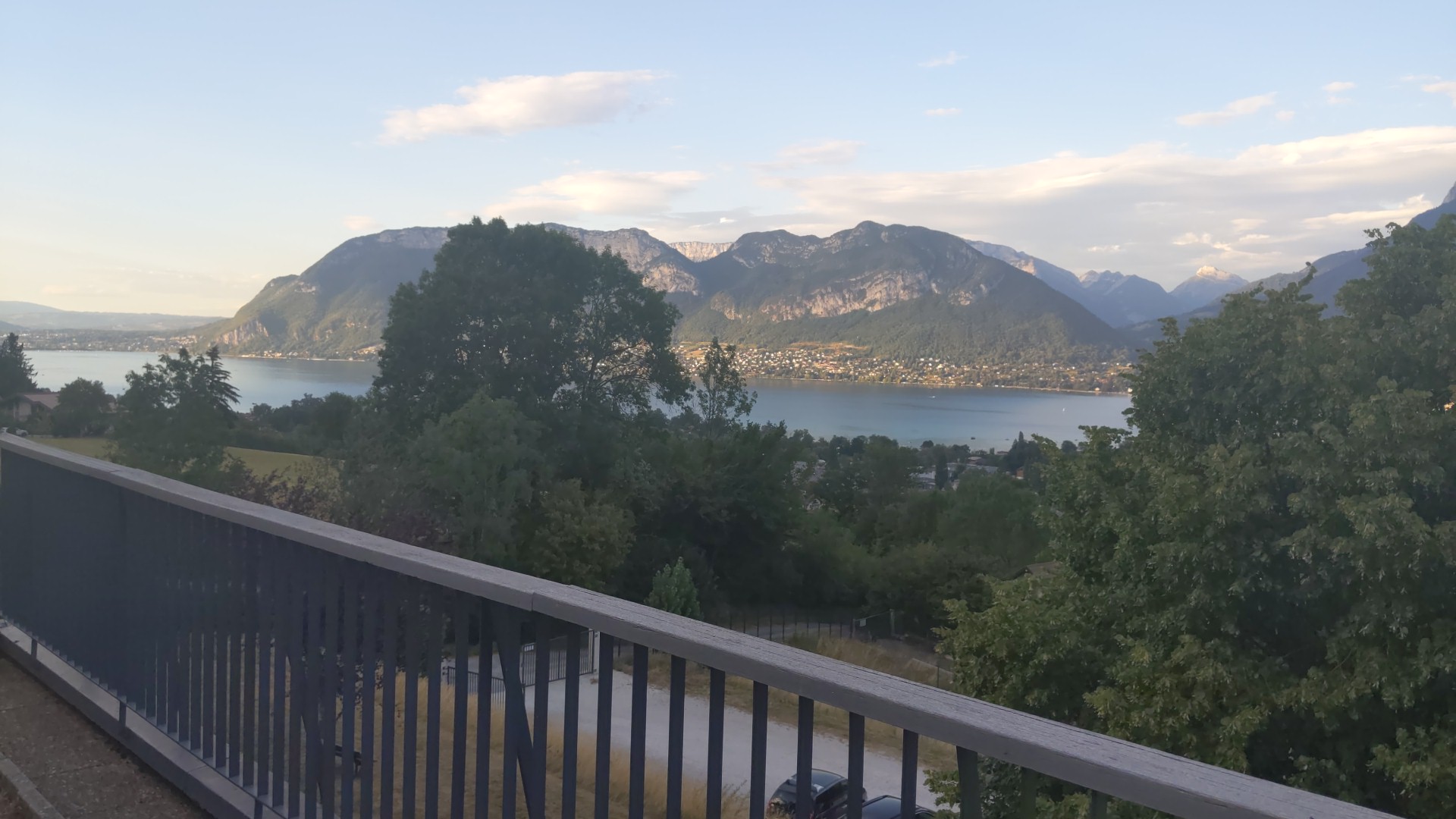 Très bel endroit situé sur les hauteurs du lac d’Annecy avec une vue magnifique sur ce dernier ainsi que sur les montagnes. Il est situé à environ 7 km du centre ville. Une ligne de transport en commun existe mais il faudra descendre a pied jusqu’à l’arrêt de bus. Pour nous le plus simple était la voiture. Beaucoup de parking sont gratuits hors juillet août. Toute la semaine nous avons profité du Parking Marquisats. Très bien situé il est à environ 10 min de marche du centre et bien placé pour le retour en cas de forte circulation. Pour en revenir aux Balcons, vous y serez très bien accueillis. Nous avions pris la demi pension afin de pouvoir profiter de nos journées. Bon petit déjeuner et en ce qui concerne le dîner, nous avons beaucoup apprécié les menus variés avec une spécialité savoyarde différente chaque soir. Le personnel en salle est très sympathique. Nous avons beaucoup apprécié également la partie bar, lieu d’apéros et de rigolades. Le personnel au bar est jeune et souriant. Merci à Marie et Mathys. Ça fait vraiment plaisir d’être accueillis de la sorte. Et au top de l’animation, un grand merci à Marylène pour sa gaieté et sa bonne humeur qu’elle nous a fait partager de notre arrivée à notre départ ….. Nous logions dans une chambre double communicante. Les chambres ainsi que la salle de bain étaient très propres. Nous avions la 112A et 112B avec vue sur le lac. Comme tout ne peut être parfait, il y a quand même quelques points négatifs mais qui ne le sont peut-être que pour moi. J’ai trouvé la taille de la salle de bain un peu petite. Pour moi le pire est le rideau de douche. Je déteste ça !! Je pense qu’une simple porte aurait été plus pratique et plus hygiénique (mais ça n’engage que moi). Attention également au bac de douche que j’ai trouvé hyper glissant.