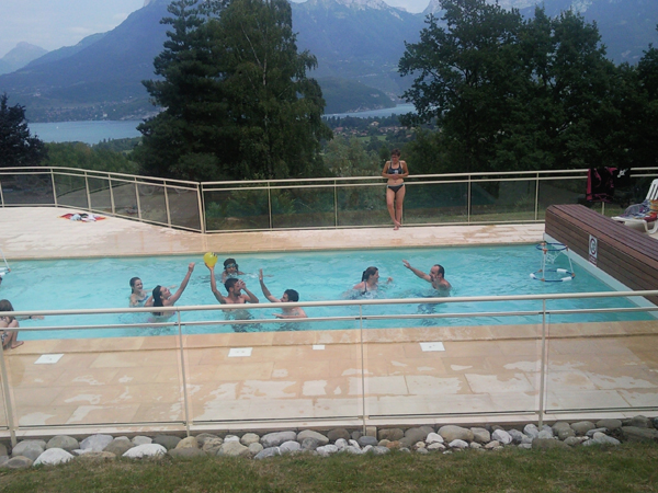 Les Balcons du lac d’Annecy, sur les hauteurs de Sevrier, est un excellent lieu pour passer des vacances en famille un peu reculées du stress quotidien. Le panorama sur le lac est juste incroyable vu du bar et de sa grande baie vitrée. Vous aurez un service de qualité avec des prix abordables à la carte. Le bar, la piscine, la salle de spectacle sont souvent très animés de concerts, tournois de sports divers, one man shows, café theatre, et vous pourrez y jouer au billard et aux fléchettes. La piscine est petite et sans aspect ludique pour les enfants mais ce n’est pas ce que vous viendrez rechercher ici, dans un cadre si paisible. J’y ai fais mes premiers pas d’animateur, mes premiers tournois, mes premiers live, mes premières scènes avec une équipe de direction et d’animation qui a beaucoup cru en moi et qui m’a fait confiance. Une expérience très marquante pour les deux parties, j’ai l’avantage de marquer les esprits partout où je passe animer. Dorénavant responsable animation à mon tour, j’ai trouvé dans ce travail une reconnaissance de ma personnalité qui est très plaisante. Merci à Violaine de m’avoir mis au pied du mur et propulsé sur scène lorsque j’étais un jeune loup fougueux. De très bons souvenirs sont restés la bas malgré toutes ces années. Le cadre est extraordinaire avec le lac d’Annecy et les montagnes, il y a à la fois un tourisme hivernal et estival. Un magnifique cadre de travail et outil de travail pour vous faire passer des vacances et moments mémorables en famille, entre amis, ou en groupe pour des séminaires ou opérations de team building. En B to C, comme en B to B, les balcons du lac d’Annecy, the place to be.