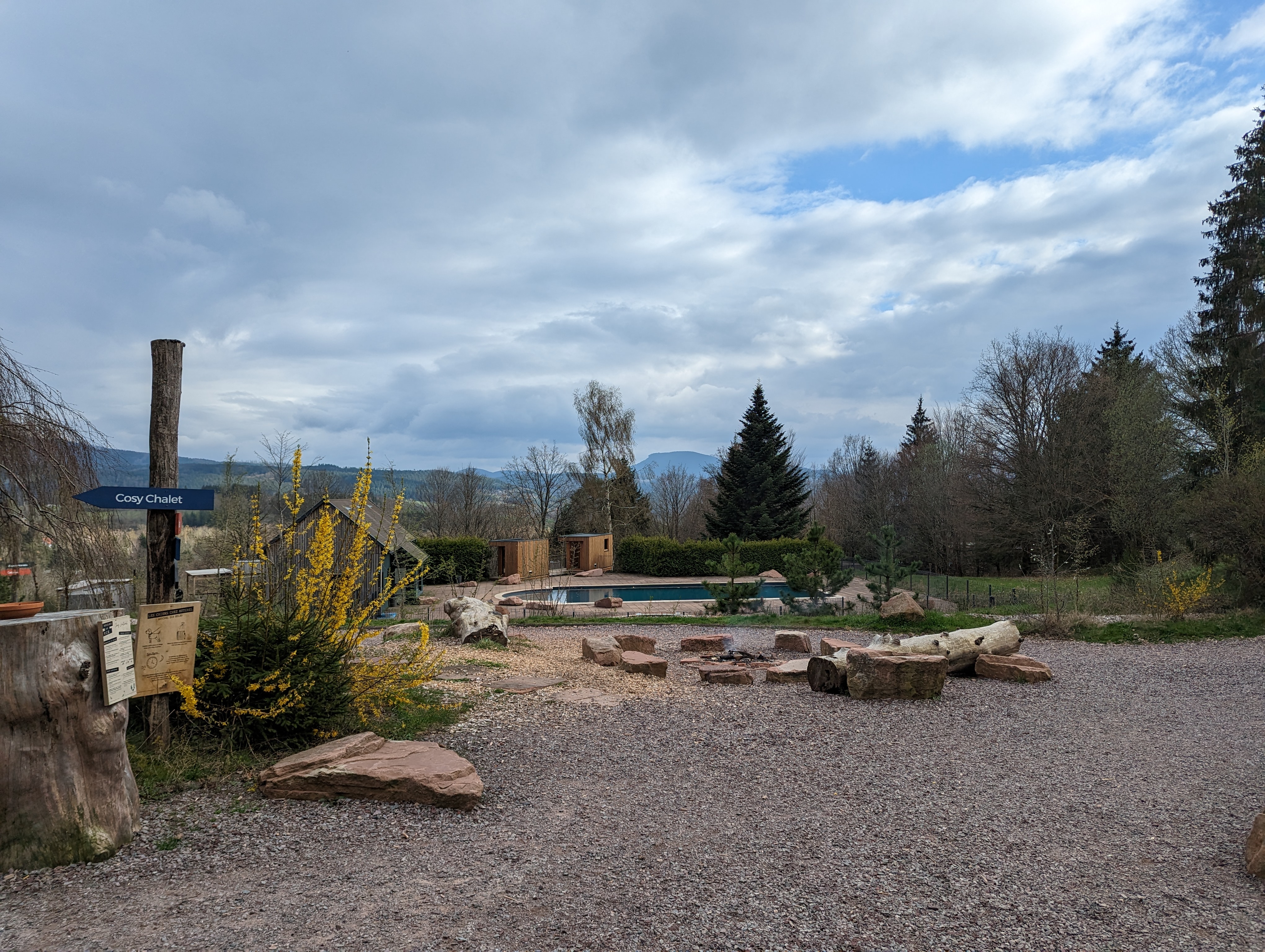 Ce séjour nous a beaucoup plu, l'hébergement était très beau et le bain nordique est un vrai plaisir et la literie est dingue. Nous avons fait pas mal de randonnées autour du site. Le cosy chalet est un endroit agréable où l'on peut faire des jeux de sociétés en cas de pluie. Dommage que le site soit à presque 1h de route de châteaux, cela limite les activités en cas de mauvais temps. Concernant les repas nous avons pris un panier repas barbecue et un au munster, c'était très bon mais ça ne vaut pas ce prix là. Bémol également sur la douche qui est en bois, hygiéniquement très moyen et il y avait des traces de moisissures blanches.