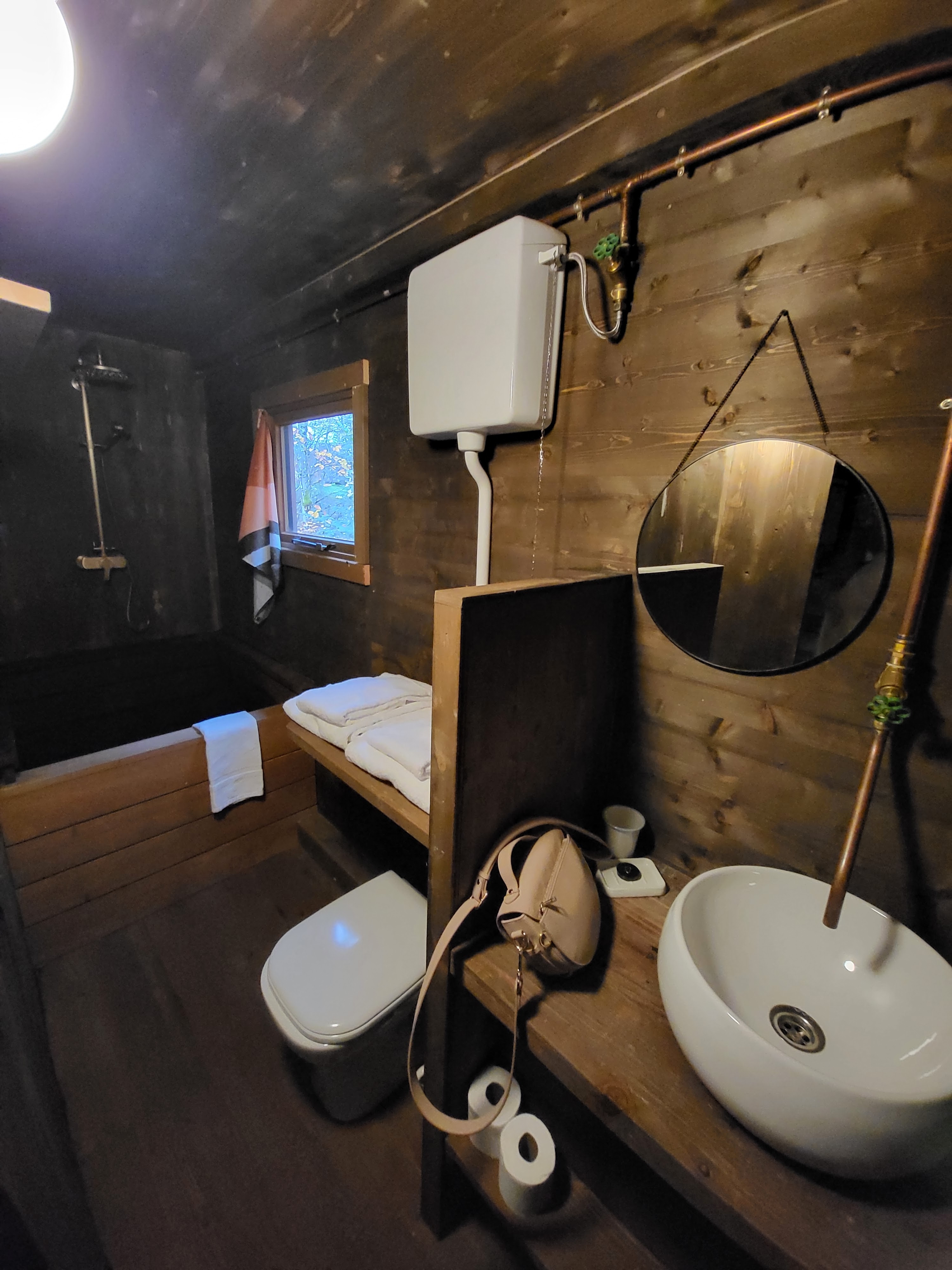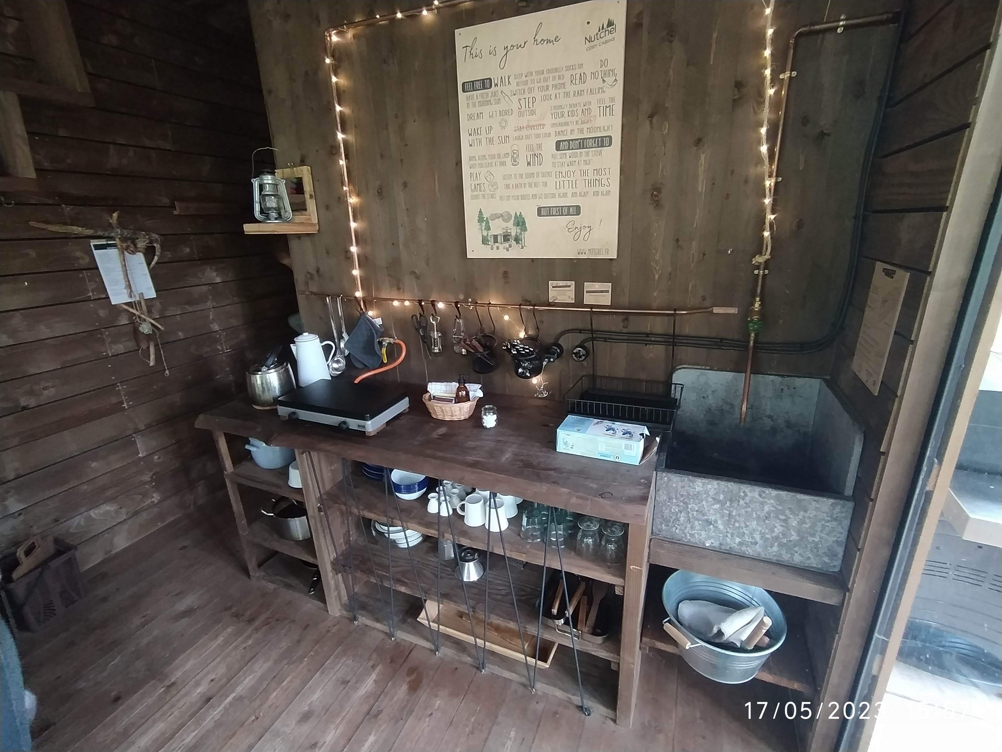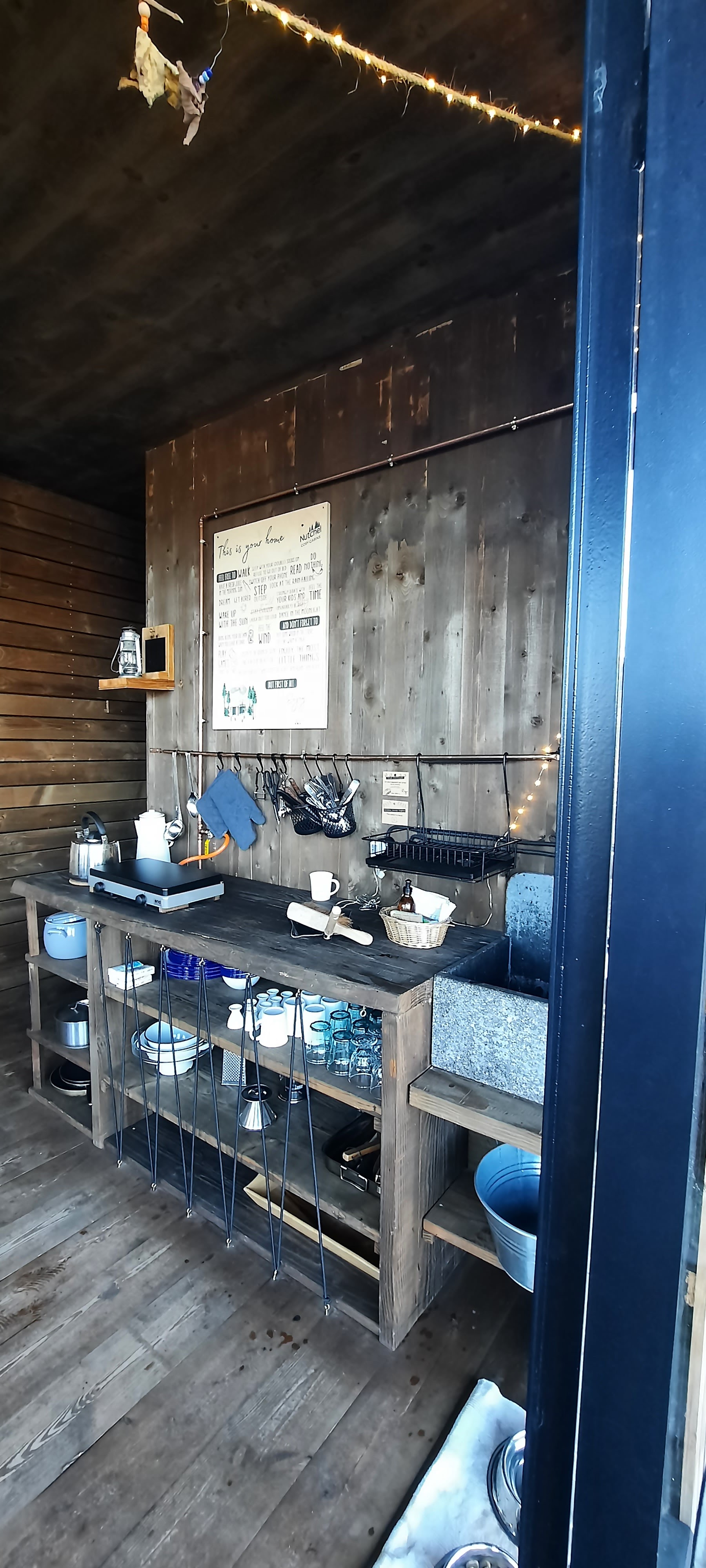 Amoureux de cet endroit !!!! Un endroit tellement merveilleux au milieu de la nature. J'adore l'original. C'est de la pure décélération lorsqu'on allume le four le matin et qu'on allume les lampes à pétrole pour faire bouillir l'eau sur la gazinière pour le premier chai de la journée. L'atmosphère est tellement merveilleuse, je suis très amoureuse de cet endroit - mon chien s'y sentait aussi très à l'aise. Il y avait deux bols, un oreiller pour chien et des biscuits pour chiens prêts - tellement affectueux. Merci Nutchell, je reviendrai !!!!