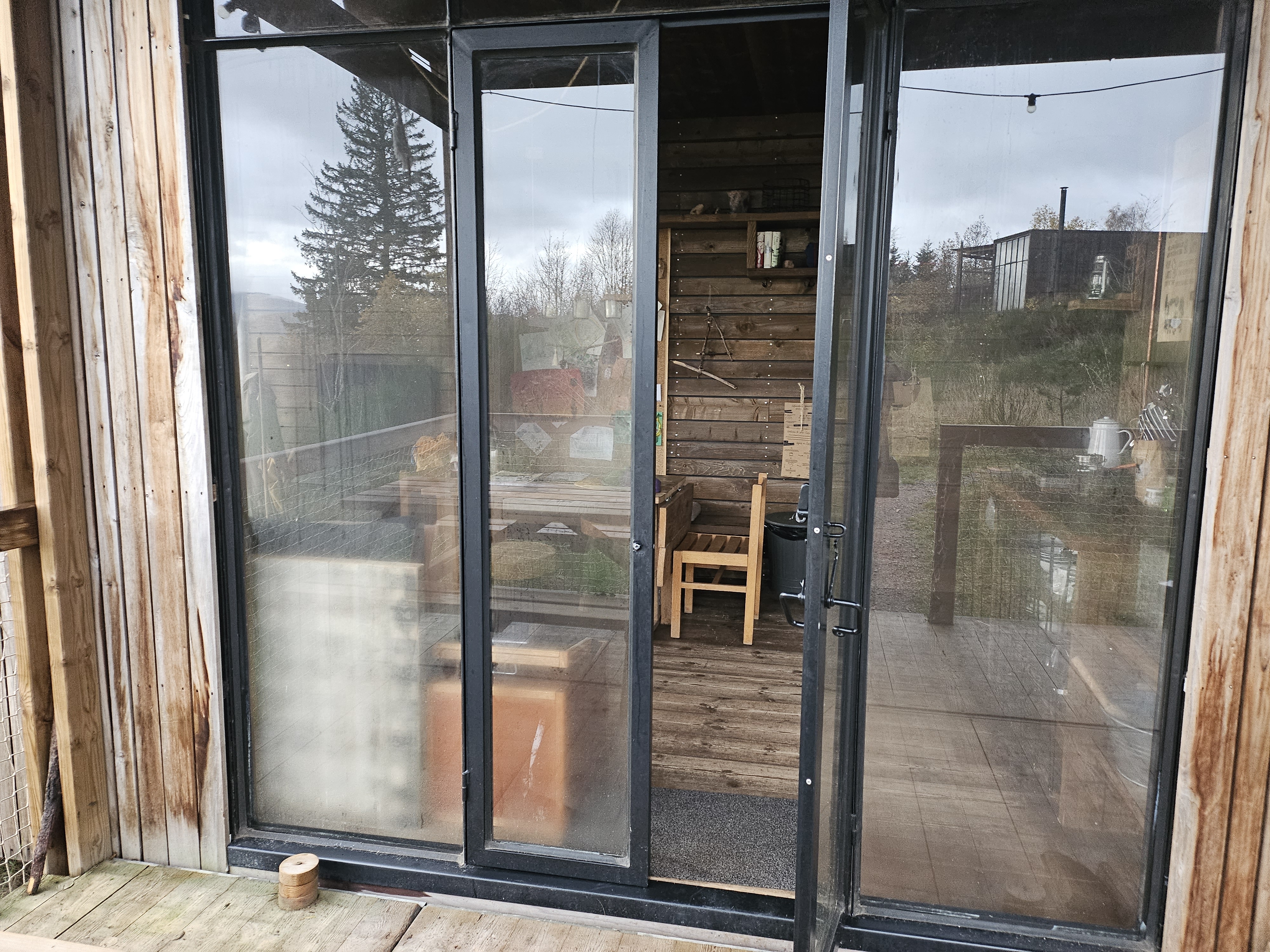 Avec plaisir encore Nous avons vraiment apprécié le séjour. Les clients accompagnés d'enfants et/ou de groupes plus importants doivent savoir que les zones de couchage et de vie ne sont pas séparées l'une de l'autre. Néanmoins, il est très beau, calme et constitue un véritable point fort lors des journées fraîches de hot tub. Le salon ouvert de la maison principale est joliment aménagé pour les enfants de tous âges et l'aire de jeux est magnifiquement située dans la forêt.