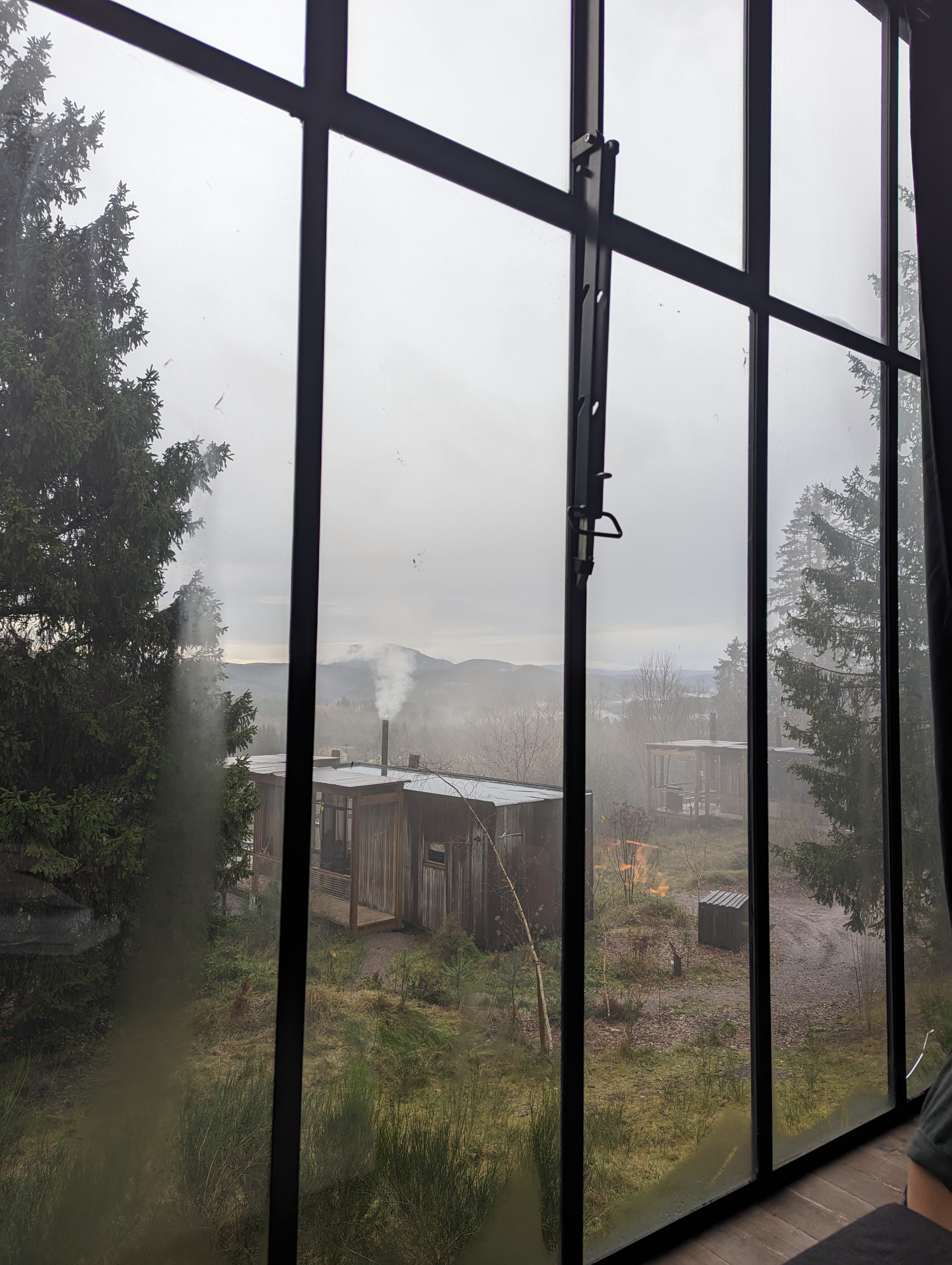 Tout d'abord, je tiens à dire que globalement nous avons passé un très agréable séjour. La cabane est parfaite, un réel coup de coeur pour ses longues et belles vitres, ce feu est extrêmement charmant et les lumières tamisées sont justes à tomber par terre. Nous avons trouvé dommage que les cabanes soient si rapprochées, ce qui rend l'expérience moins intime. Il y a quand même beaucoup de cabanes au final. Je serai curieuse de revenir voir le domaine dans quelques années, peut-être que le reboisement changera la donne. Par ailleurs, ce qui nous a fortement déplu c'est le fait d'être réveillés à à peine 9h du matin (alors que le check out était prévu à 11h) par le personnel qui a ouvert porte arrière de la cabane pour on ne sait quelle raison. Nous n'avons pas été prévenu et nous nous sommes demandés ce qu'il se passait. Ensuite à 10h30 alors que nous étions encore en train de faire nos bagages, le personnel était déjà occupé de nettoyer le bain finalandais alors que nous étions encore là. Rien de grave en soi mais ce n'est absolument pas agréable. Nous aurions largement préféré qu'on nous demande de faire le check out à 10h30 du coup. D'autres petits détails font également que l'expérience n'était pas mauvaise mais n'était pas exceptionnelle non plus. Ma note de 6/10 reflète donc mon avis en terme de qualité des services -/d'accueil VS prix.
