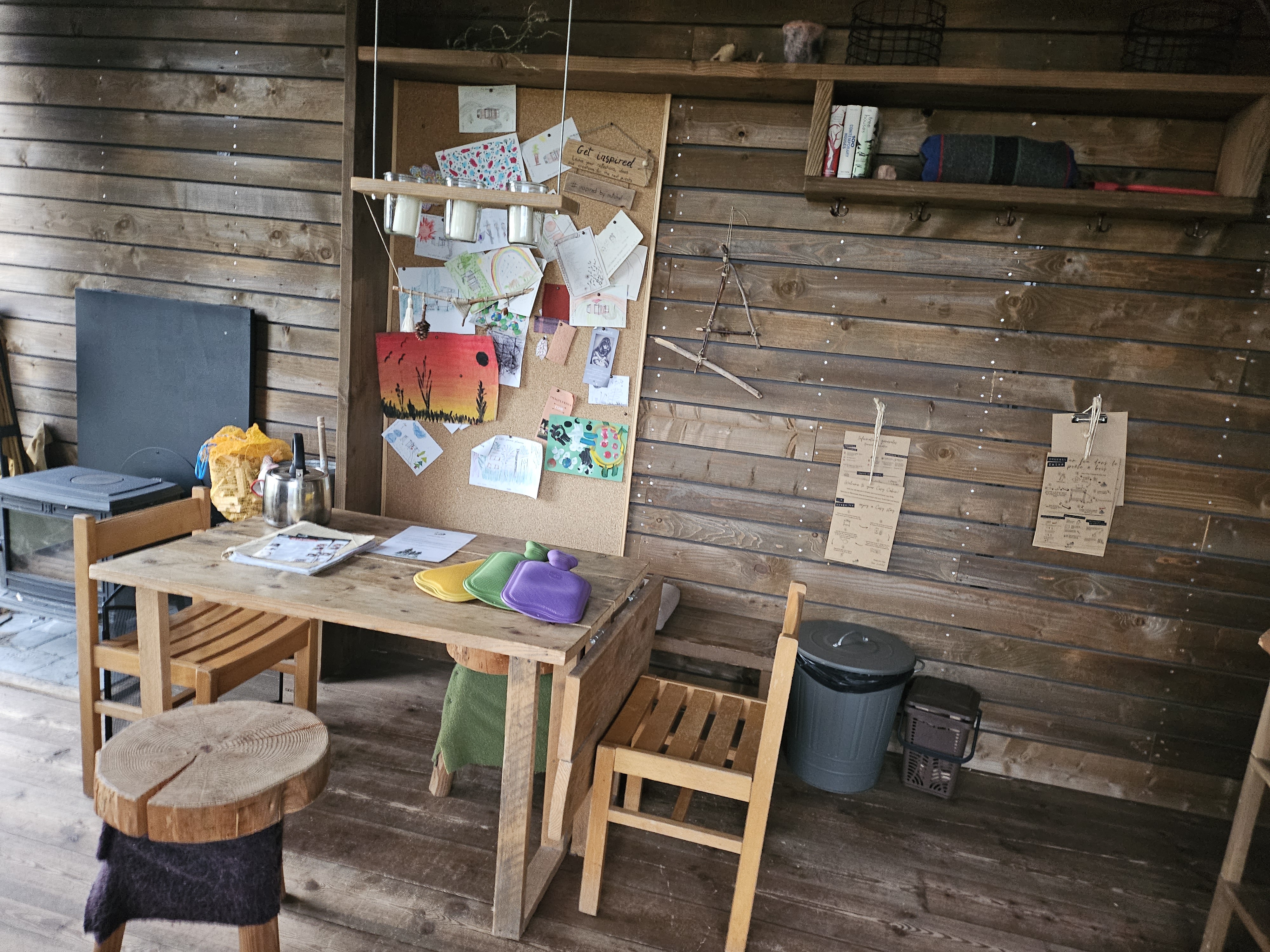 Un refuge douillet à la campagne Nous avons vraiment apprécié notre séjour malgré le mauvais temps. La cabine était super confortable et meublée avec une grande attention aux détails. Nous avons également beaucoup apprécié que tout soit pensé pour notre chien. Quelqu’un a également beaucoup réfléchi aux activités de loisirs sans médias numériques.