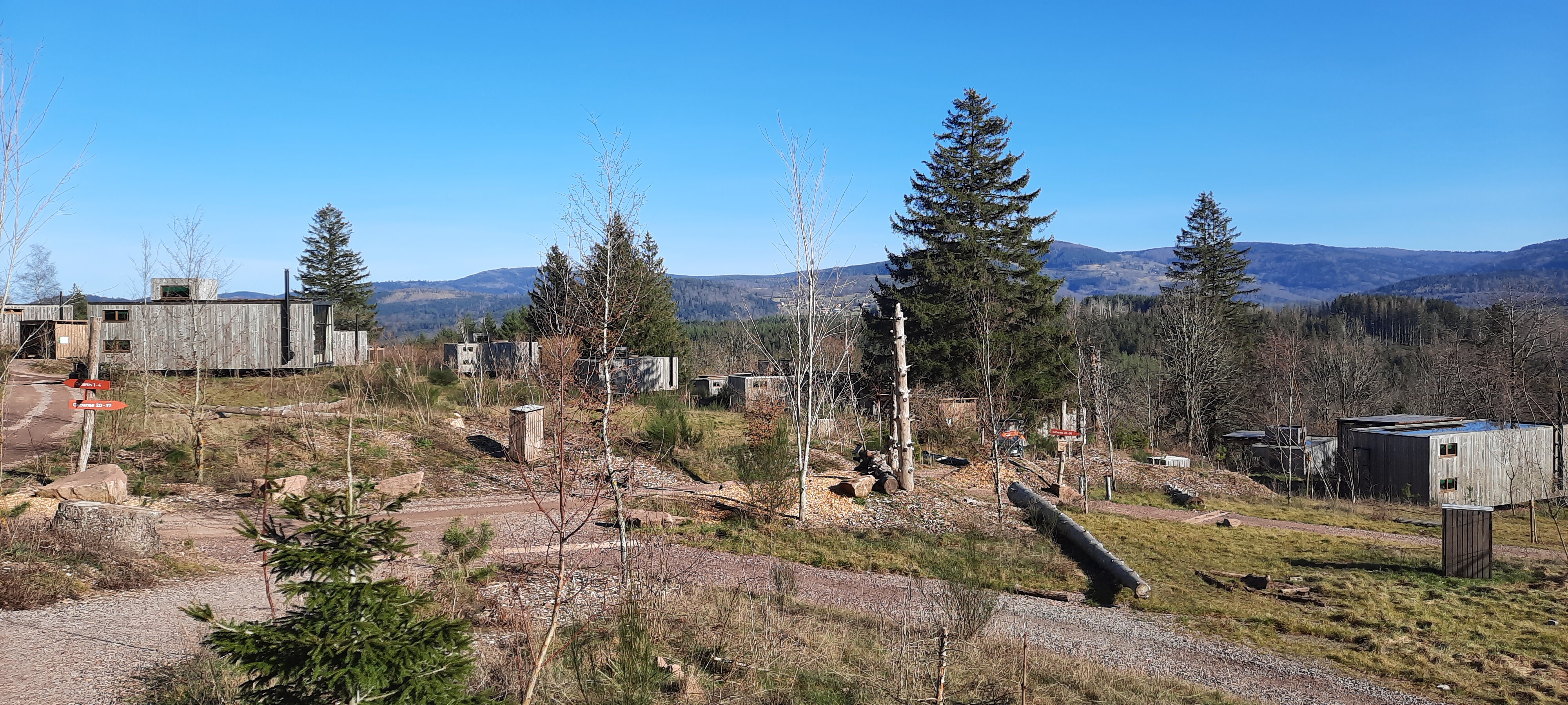 Il y a quelques jours nous étions dans le village d'Alsace pour la deuxième fois. Comme nous ne conduisons qu'une heure et demie et qu'il y a un Super U en route, c'est pour nous une pause bienvenue dans le quotidien. Cependant, la deuxième visite a perdu un peu de sa magie par rapport à l’année dernière. Nos retours : + C'est merveilleux que les chiens soient les bienvenus, il y a aussi des biscuits pour chiens, un lit et des gamelles dans la cabane + personnel incroyablement sympathique, toujours à l'écoute + bel emplacement en lisière de forêt, cadre très idyllique au centre de la nature - Malheureusement, notre cabane n'était pas vraiment propre... il y avait des miettes par terre, des poils de chien sur le canapé et des restes de nourriture sur la table. Je suis conscient que ce n'est pas une chambre d'hôtel, mais que les gens ne font pas attention à ce genre de choses ici et se contentent de les parcourir avec un aspirateur ou un chiffon humide :( - L'intérieur des cabines est conçu avec beaucoup d'amour, mais le mobilier est très instable et le canapé est également désolé - une imposition - Je ne pense pas que le rapport qualité/prix soit justifié. - Vous ne pouvez arriver qu'à partir de 16h, la journée est donc presque terminée au moment où vous arrivez effectivement :( - L'emplacement et la vue sont visuellement très idylliques, mais il n'y a pas de jolis sentiers de randonnée ni de circuits circulaires à travers la forêt