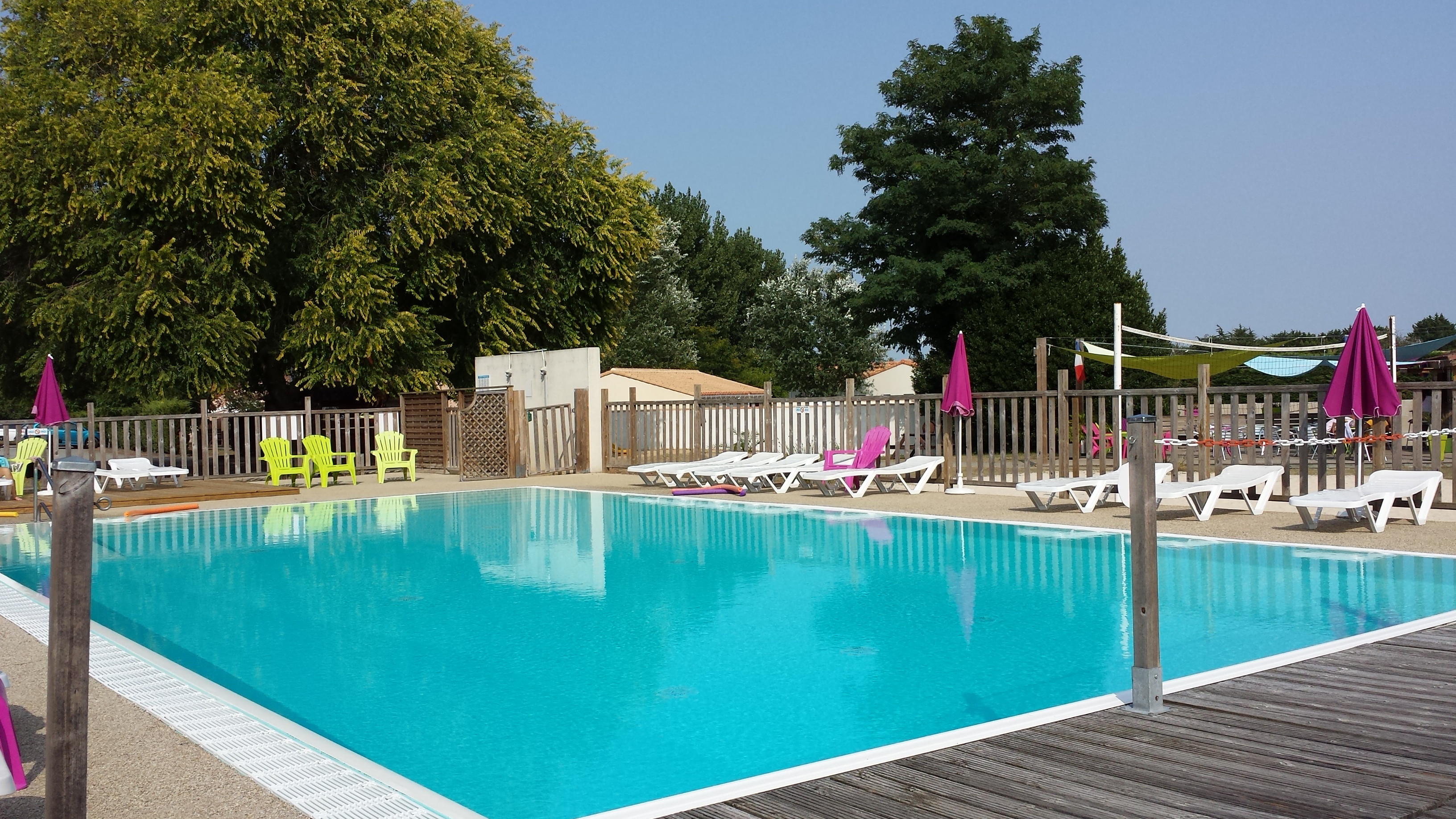Très bon camping, à échelle humaine avec de l'espace et une équipe d’encadrement au top ! Nous sommes deux grands-mères qui avons séjourné avec nos petits enfants, dans ce camping en gîte, mais qui offre également la possibilité de bungalows, pour une fois on ne se sentait pas collés aux autres, de l'espace il y en à vraiment dans ce camping familial. Un camping propre, des animateurs motivés, un gîte standard, propre. Une piscine qui mérite un « bravo » : Elle est classée au top 5 des piscines de Vendée au niveau sanitaire Elle est chauffée c'est le plus quand la météo est capricieuse, la surveillance reste à la charge de parents, sans maître nageur. Elle est géniale ! La salle d'animation, un préfabriqué plutôt simple mais suffisant pour l’organisation de soirées dansantes. Les points forts: un cadre très sympa, arboré proximité de l'océan par un chemin forestier, la sympathie des animateurs, du personnel, les animations variées, les soirées, jeux pour enfants, le calme respecté par tous. Les sites touristiques (et non touristiques) sont nombreux dans la région. Bar convivial avec la responsable « Daly » qui connait « la maison » depuis de nombreuses années, et qui veille au bon fonctionnement du camping et au confort des vacanciers. les points faibles: pas de vrai restaurant ou de superette, mais soirées organisées avec repas, et l’’animation est au top ! Les commerces sont un peu loin pour les personnes non véhiculées, donc peu de points faibles ! Pour conclure c'est un très bon camping ou le personnel est très à l'écoute et réactif, le club enfant est très bien, on a très envie d’y retourner l’année prochaine !