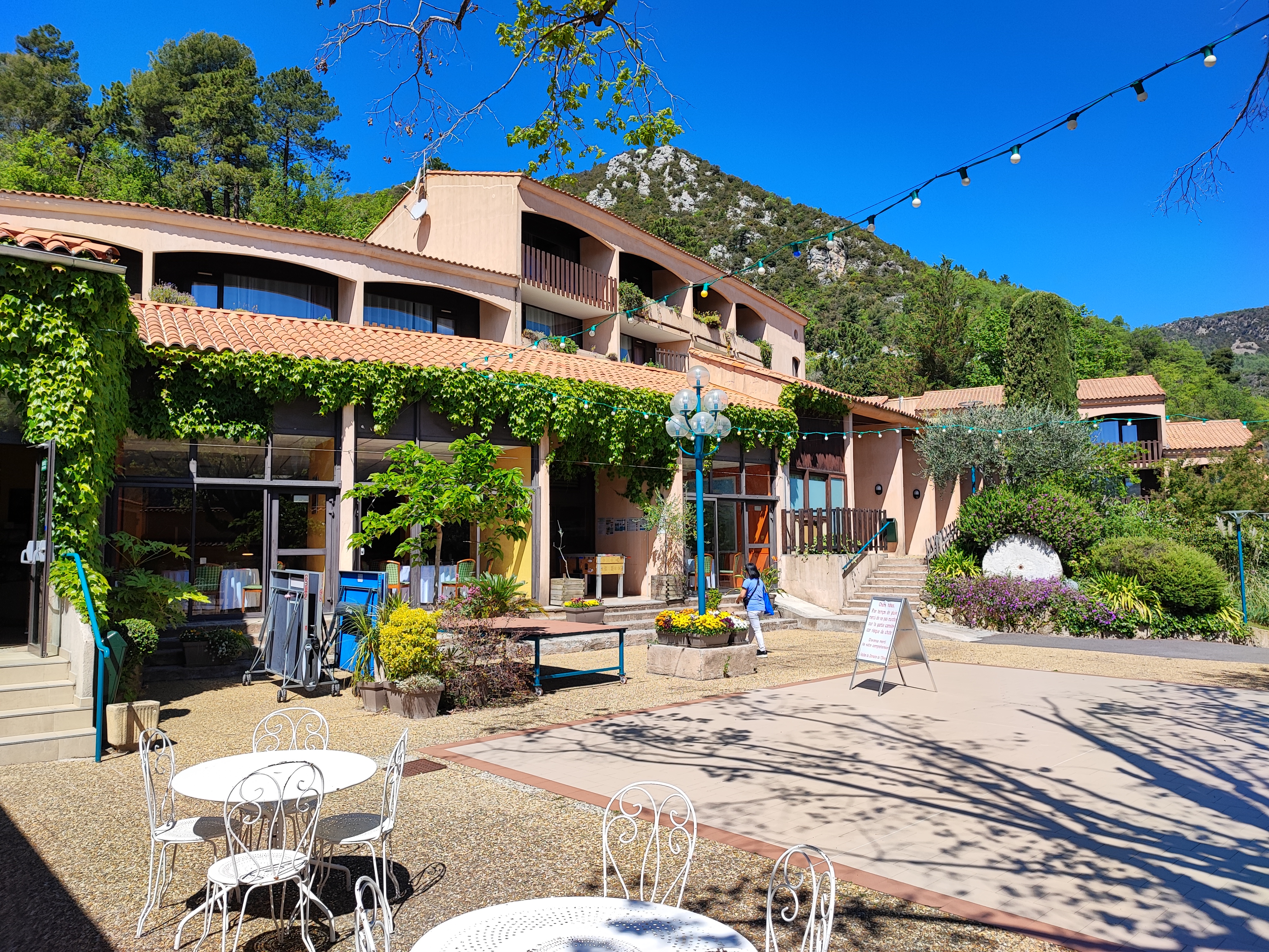 Magnifique vue sur les montagnes et la rivière. Très beau village vacance méditerranéen avec beaucoup d'ombre et de végétation. Très belle chambre familiale très spacieuse (alors que nous sommes 6 et avec deux poussettes) mezzanine, terrasse et vue splendide. On y mange très bien, recette équilibrée, fraîche et variée alors même que nous sommes assez gourmet. Le personnel et les animateurs sont très souriant et dynamique. Protocole sanitaire respecté, merci à pour ces supers vacances