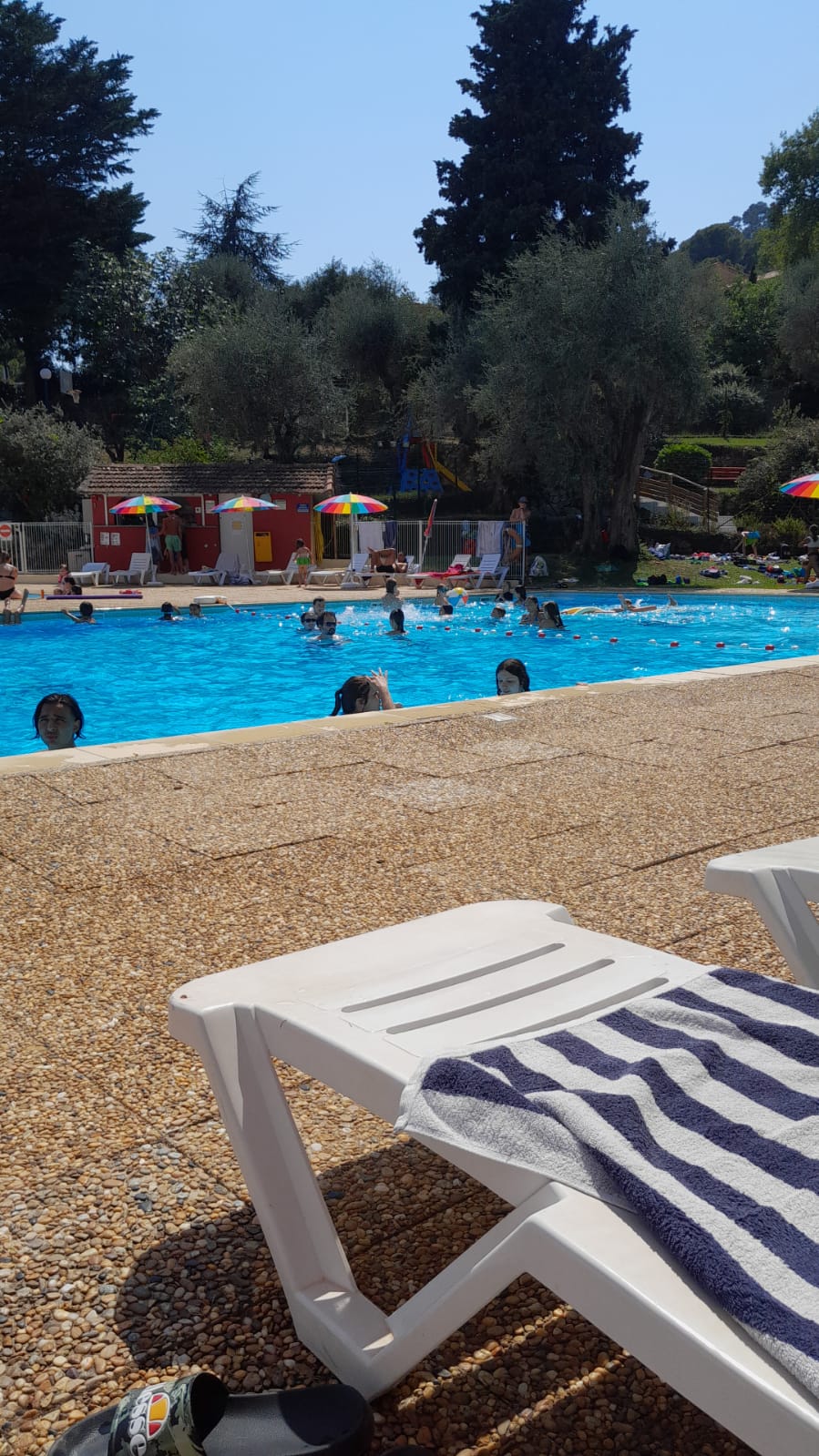 Bonjour Le domaine de l’olivaie est très grand, il n’y a rien à proximité, obligation de prendre le véhicule! C’est vraiment sur les hauteurs de Nice! Piscine non chauffée, donc bien fraîche! Situé sur le bas du domaine ! Les chambres ont besoin d’un relooking, ça sent le renfermé, pas de Clim il fait très très chaud! Salle de bain vétuste, odeur de moisissures, pas d’aération !!! Côté restauration c’est pas très bon, les repas sont peu variés ! Les entrées quasiment les mêmes tous les jours……. ! Dommage peu de choix! Buffet très petit! Le côté repas des enfants nuggets pâtes toute la semaine 🙄🙄🙄!!!!!!! Très mini frigo pour les petits pots de glace vanille/fraise !!!! Côté activité c’est très flop 👎👎 il y a 2 tables de tennis de table et interdit d’y jouer après 20h! 😳 les animations le soir sont sans plus rien de wahou 😞😞!!!!! Et à minuit stop plus de musique alors qu’il n’y a rien autour! Le prix des glaces et boissons c’est abusé ! On est là pour passer des vacances pas pour y laisser le compte 😳!!!! Ils vous crée un compte et chaque Conso est notée vous payez à la fin du séjour et la surprise 😦 !!!!! En résumé c’est pas les vacances rêvées, si vous aimez les bonnes ambiances, bien manger et vous sentir vraiment en vacances il y a largement mieux !