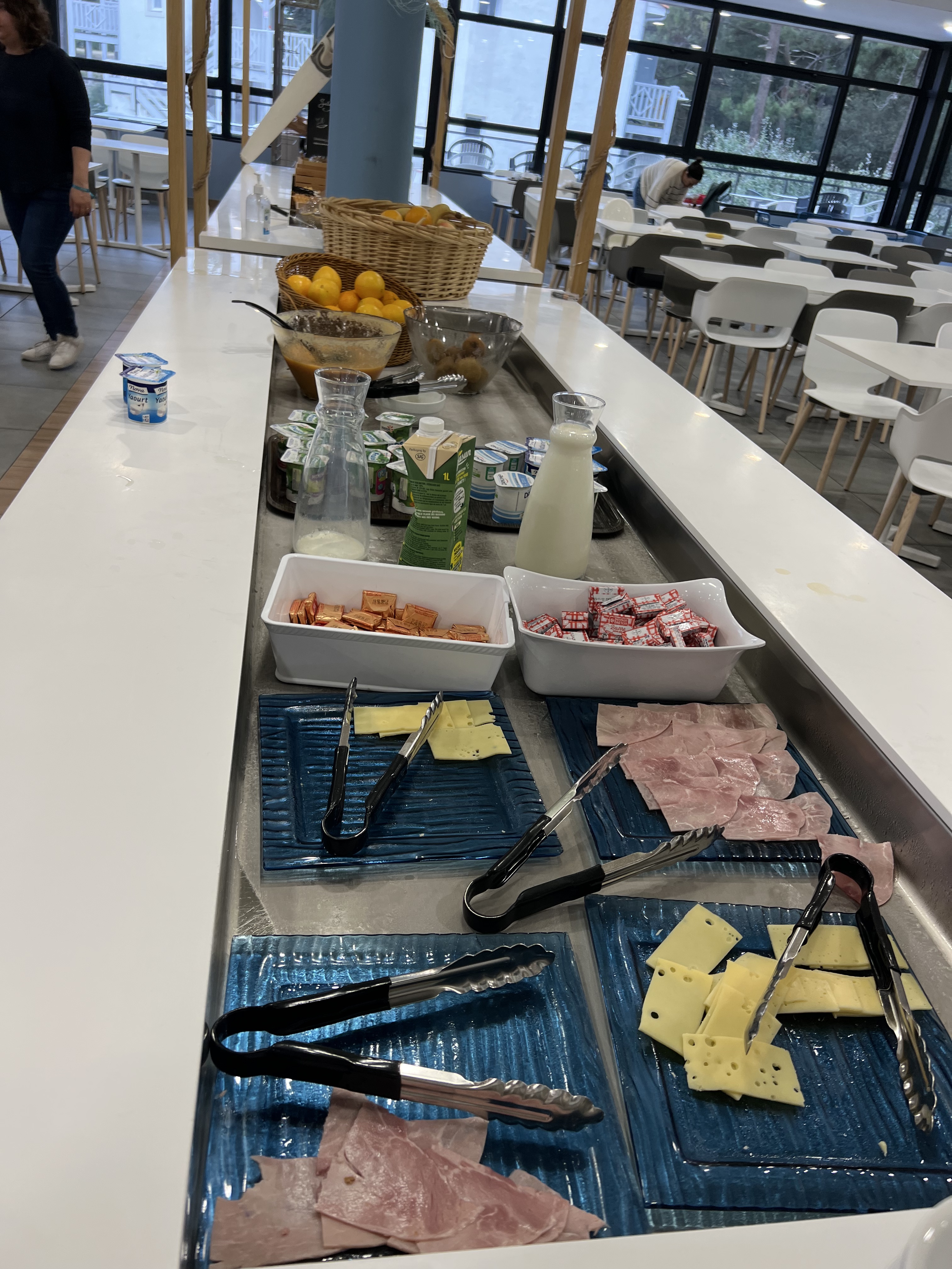 Gros problème de restauration! Petit déjeuner jusqu’à 10h, mais à 9h15 plus d’œufs brouillés, plus de brioche vendéenne…. Aucun fruit de la semaine!!!! Au dîner, même chose! Dîner jusqu’à 21h, mais à 20h 20h15, plus de choix de plats, plus de sauce pour le couscous, plus de dessert. Bien souvent les fontaines à rosé sont vides, il faut attendre qu’elles soient rechargées. Les mêmes entrées tous les soirs de la semaine!! Et les tables ne sont pas nettoyées et réinstallées pour les nouveaux arrivant pour dîner plus tard, donc vous vous débrouillez!!!!! Évitez surtout le monsieur avec sa longue tresse, il est très désagréable!!!! Ambiance triste, aucun endroit chaleureux!