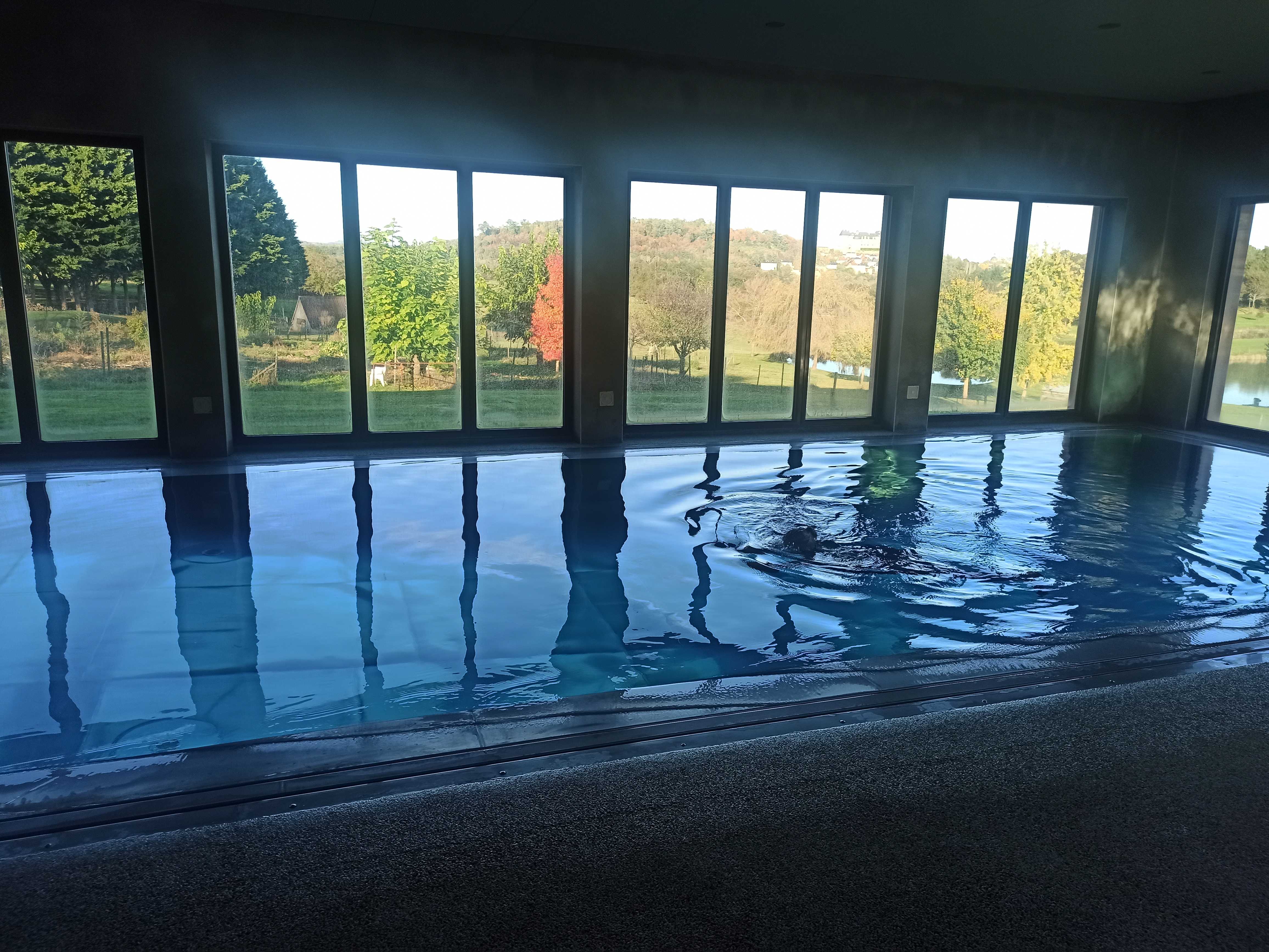 Petites maisons individuelles. Piscine interieur et extérieur, jacuzzi. Proprietaires sympathiques. Animaux dans propriétés que l on peut approcher. Paddle sur le lac, pêche etc, etc