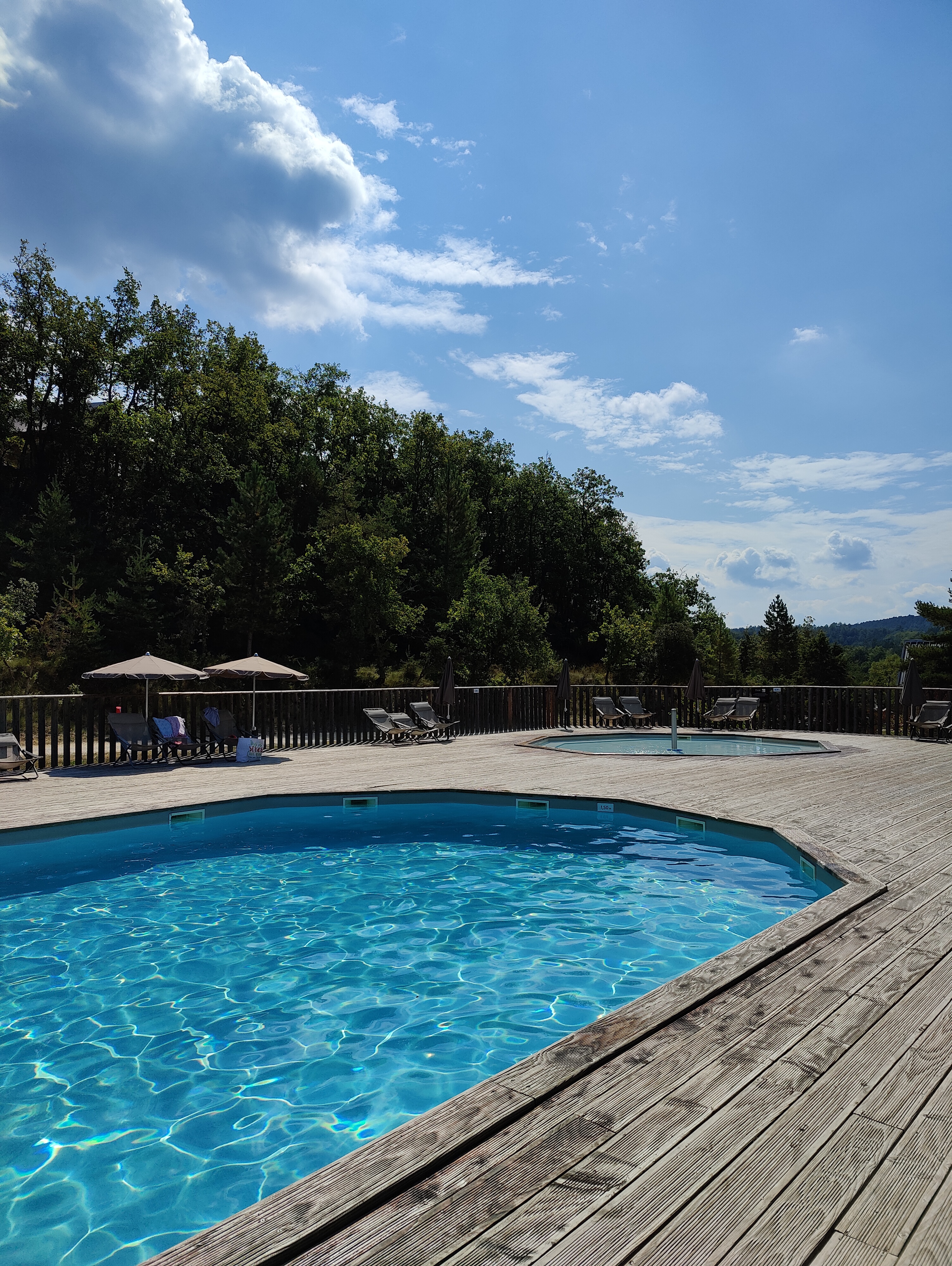 Beau camping dans un joli site forestier. Bien équipé : piscine, spa forestier, laverie. Quelques bémols toutefois : tout se fait à pied et notre hébergement était loin du centre de vie et des activités. Idéal familles