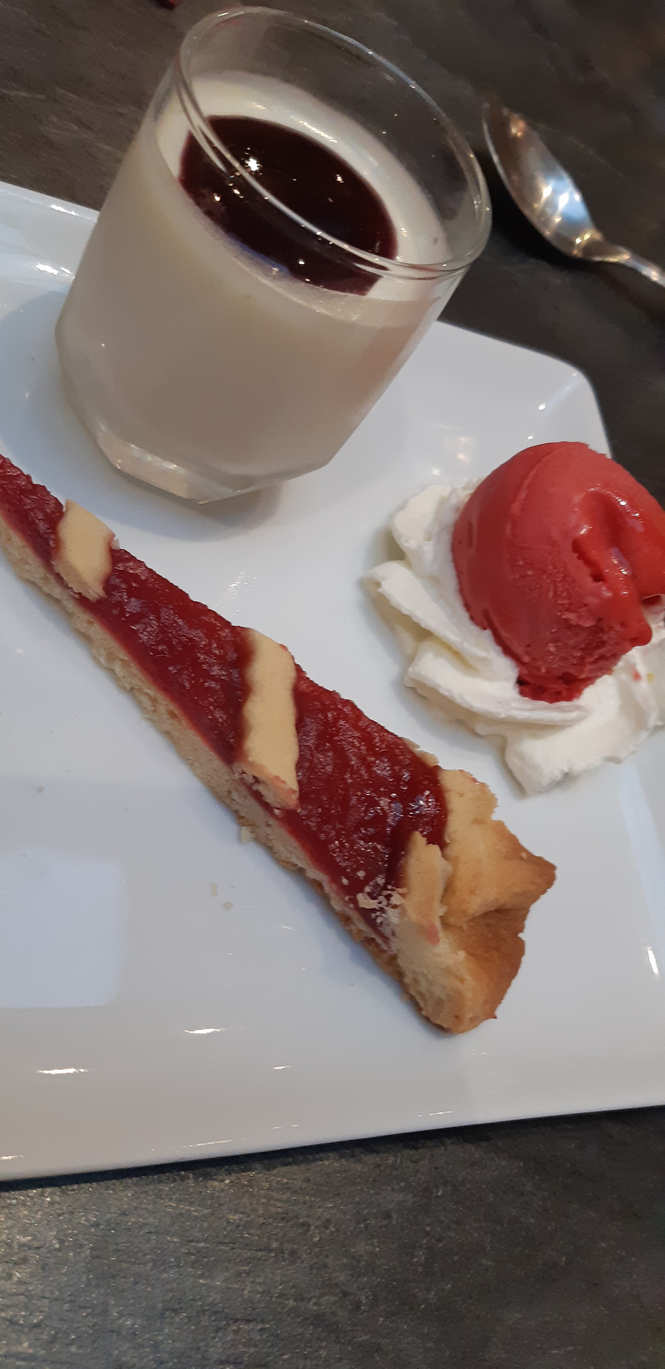 Un superbe repas dans un cadre superbe, de l'orage et des éclairs dehors , la bonne compagnie .