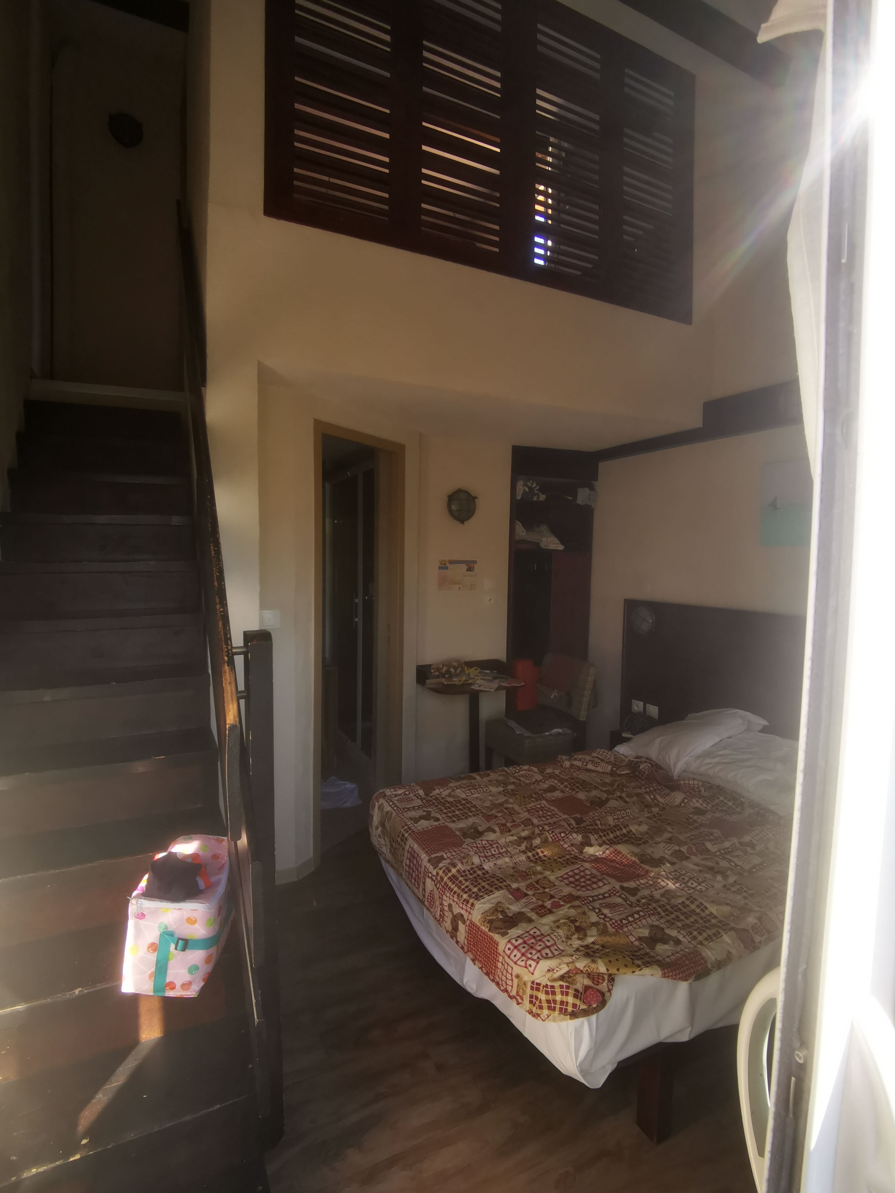 Un petit pieds à terre, tranquille pour un voyage organisé, un grand lit, salle de bain avec douche et lavabo, séparé par une porte pour un WC, une bonne WMC en puissance, 2 petits placards un peu difficile d'accès, une climatisation ok. Au niveau de la restauration, grande salle, avec de nombreuses dépendances, un espace pour l'apéritif accompagné de quelques amuses gueules, une piscine, la mer juste à côté... Sympa.