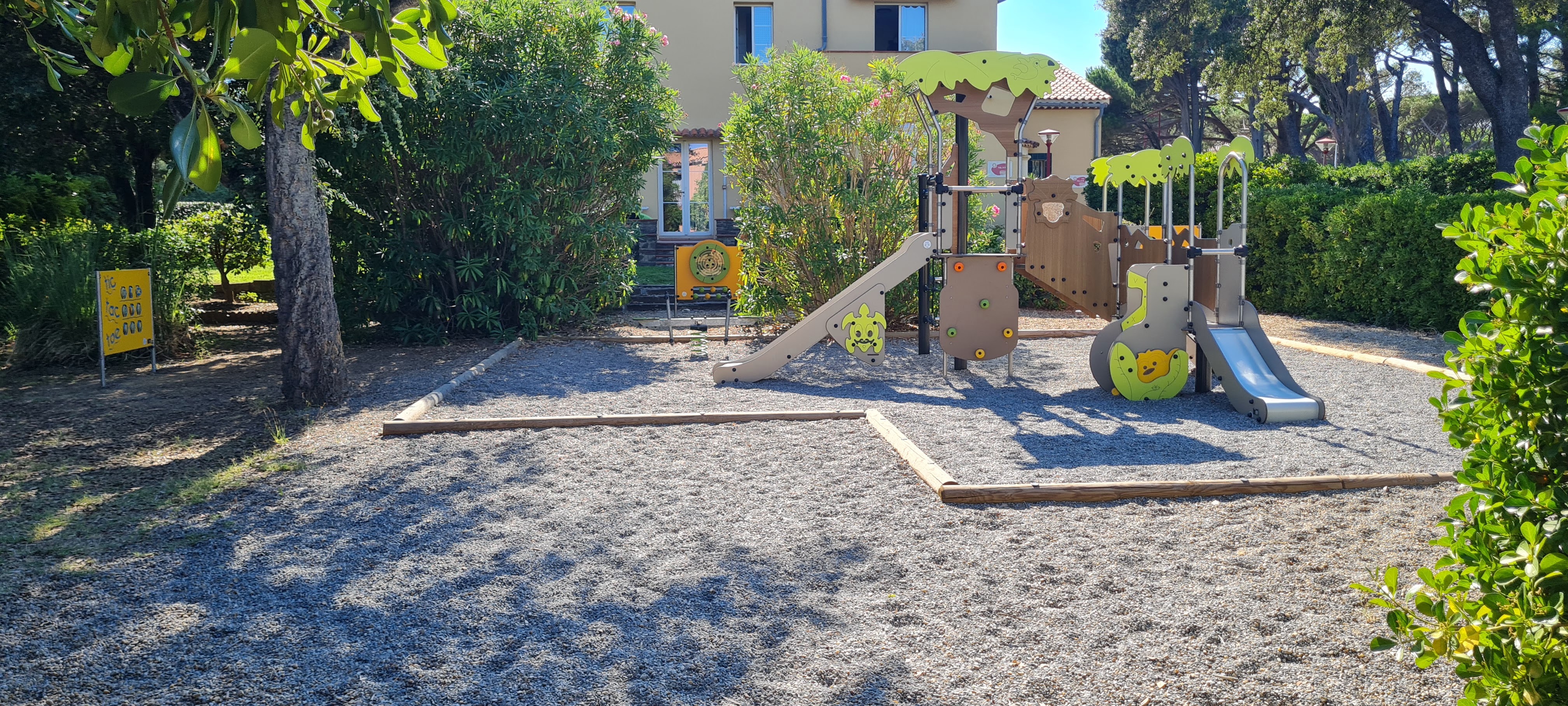 Village vacances agréable bénéficiant d une situation privilégiée à proximité d un arrêt de bus et en face de la belle plage de la Nartelle. Farniente assuré. Equipe d animation au top : Farid,Sebastien et Nathalie sauront vous détendre sans vous saturer ! Nell,Orlane,Florian et Thibaut seront disponibles et souriants pour occuper vos enfants dans la bonne humeur. Le directeur est à l ecoute des vacanciers et de son équipe et cela se ressent positivement ! Il manque une étoile car la restauration manque de qualité surtout au dessert,les tartes surgelées ne sont pas à mon goût. Il faut savoir que le village est à proximité d une route très passante.