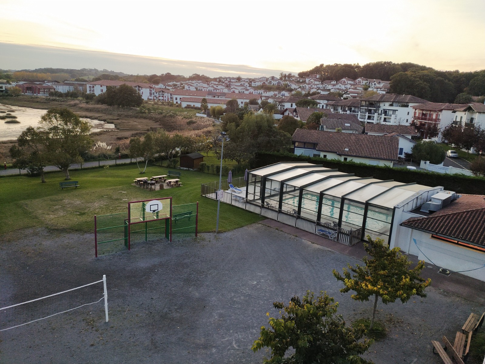 Bien situé près de la mer et de la montagne, à un prix très raisonnable, super vue sur les Pyrénées si vous êtes côté rivière. Nous avons passé un super séjour grâce notamment à l animatrice adultes sandra qui nous a montré des coins sympas, parlé de la flore et de l histoire du pays avec passion et organisé des soirées très sympathiques 😀 Belle piscine ouverte jusque 22h le spa et le hammam. Par contre peu de vagues à saint jean de luz, la baie est calme du aux digues, adaptée aux jeunes enfants, au paddle mais pas au surf. Surf sur handei ou la plage d erromardie mais ce n est pas comme à biarritz. Proche de l'Espagne pour y faire achats, sorties à San Sébastian. C est vrai que les soirées finissent tôt 22h30 en moyenne, donc c est calme le soir, à déconseiller pour des jeunes qui veulent faire la fête. Attention en septembre octobre cette année des groupes de personnes âgées